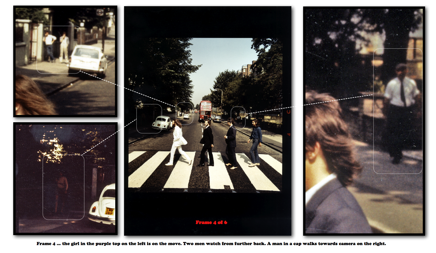 One of my favourites is a mysterious lady in a purple top who appears deep in the shadows on three of the frames, for example. Who was she? She probably doesn’t even know that she was there that day – but someone will know who she is. During our research, we have discovered a dozen other bystanders, just like her. In frame 3, a black delivery van pulls in behind the iconic white Beetle. The van only appears in one frame, then its gone. Look very closely and you can see the left arm of the delivery driver as he stands at the back of the van. It’s fascinating to me to think that if a different frame had been chosen as the cover, some of these other characters might have been on the album sleeve. It’s also interesting to have a set of photographs with the actual frame numbers visible, so we can establish with absolute certainty the order of the images.