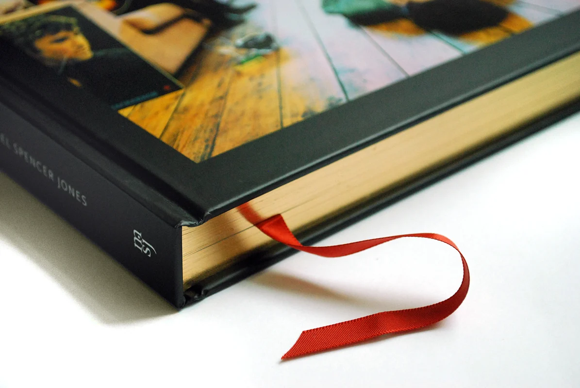 Gilt edged in gold with a red ribbon book marker