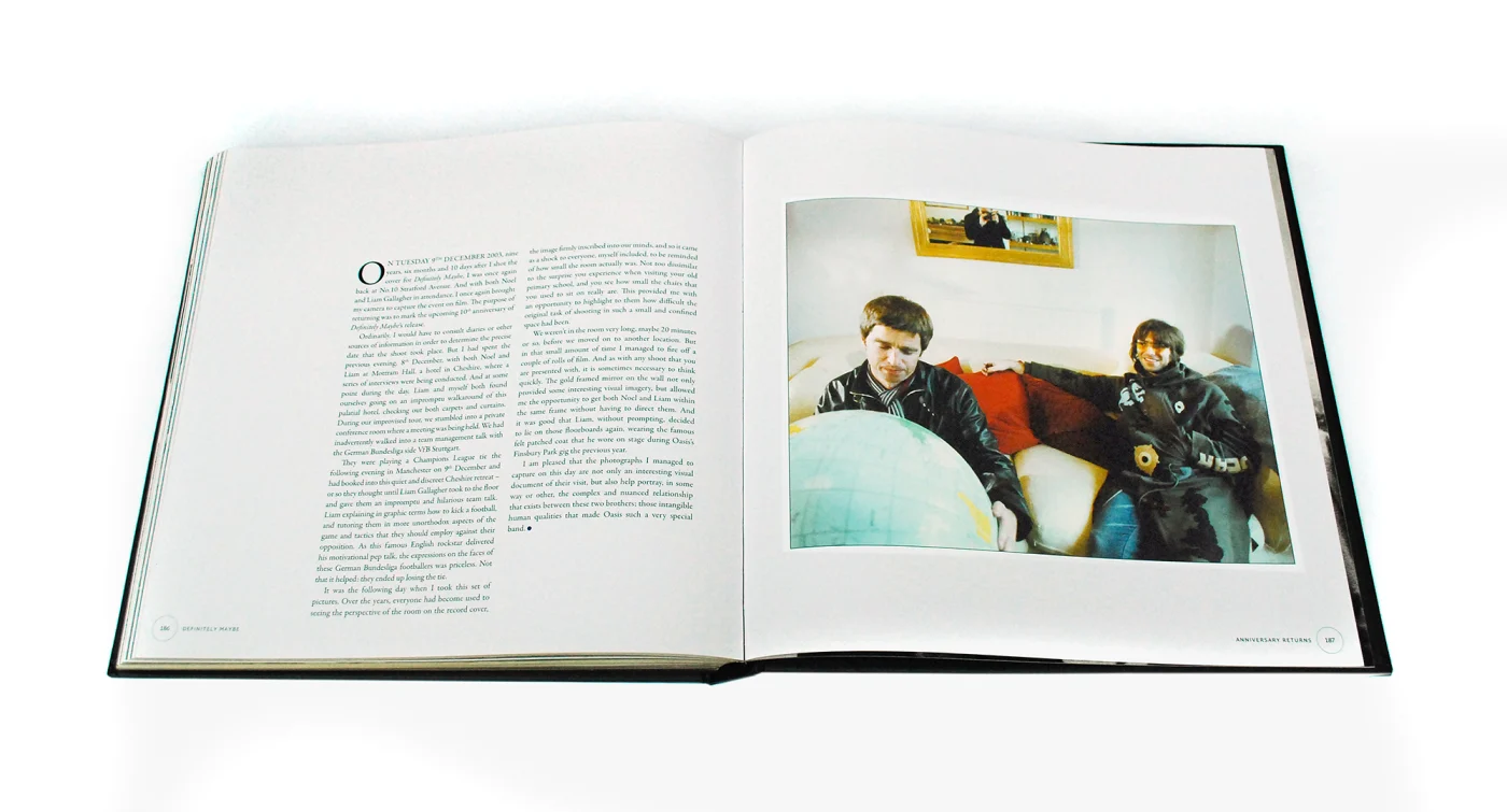 Included with the Deluxe Edition is a 10 x 9 inch print of one of the Definitely Maybe album cover session photographs—an image that is not included in the book—each individually signed by Michael Spencer Jones.