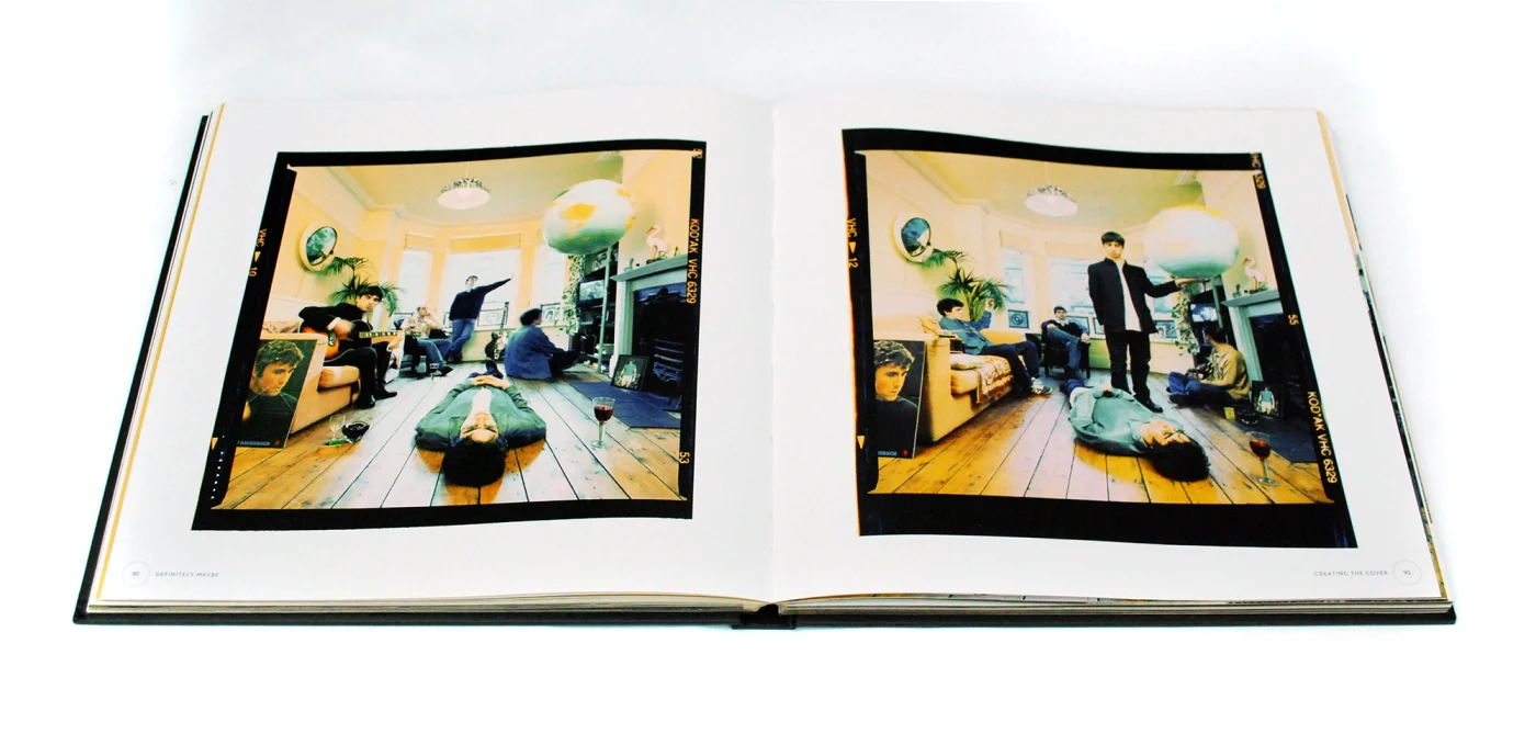 Alongside these two specially signed artworks, the Deluxe Edition also comes with a rare and previously unpublished 10 x 8 inch black & white contact sheet from the Definitely Maybe album cover shoot and is from the photographer’s own personal archive.