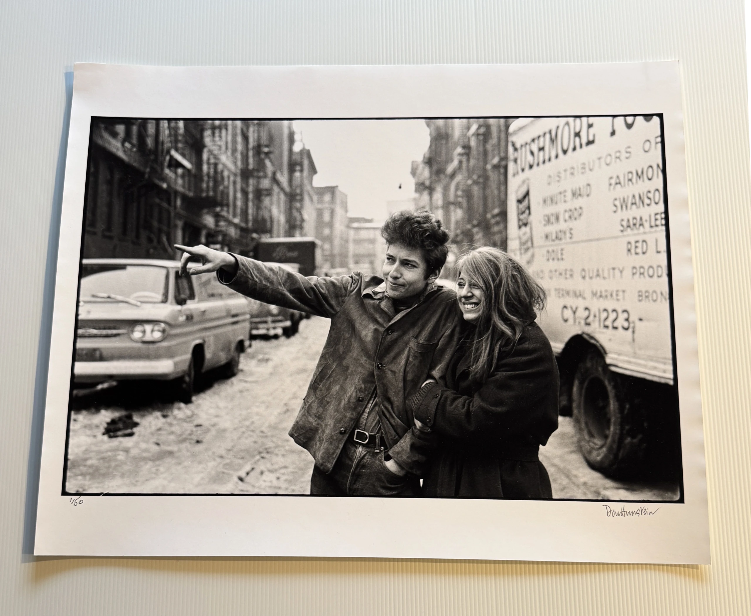 This portrait of Bob Dylan and Suze Rotolo, was taken by Don Hunstein in Manhattan on a freezing cold afternoon in February 1963. This was one of the session photographs Don took for the cover of Dylan’s second album, The Freewheelin’ Bob Dylan.